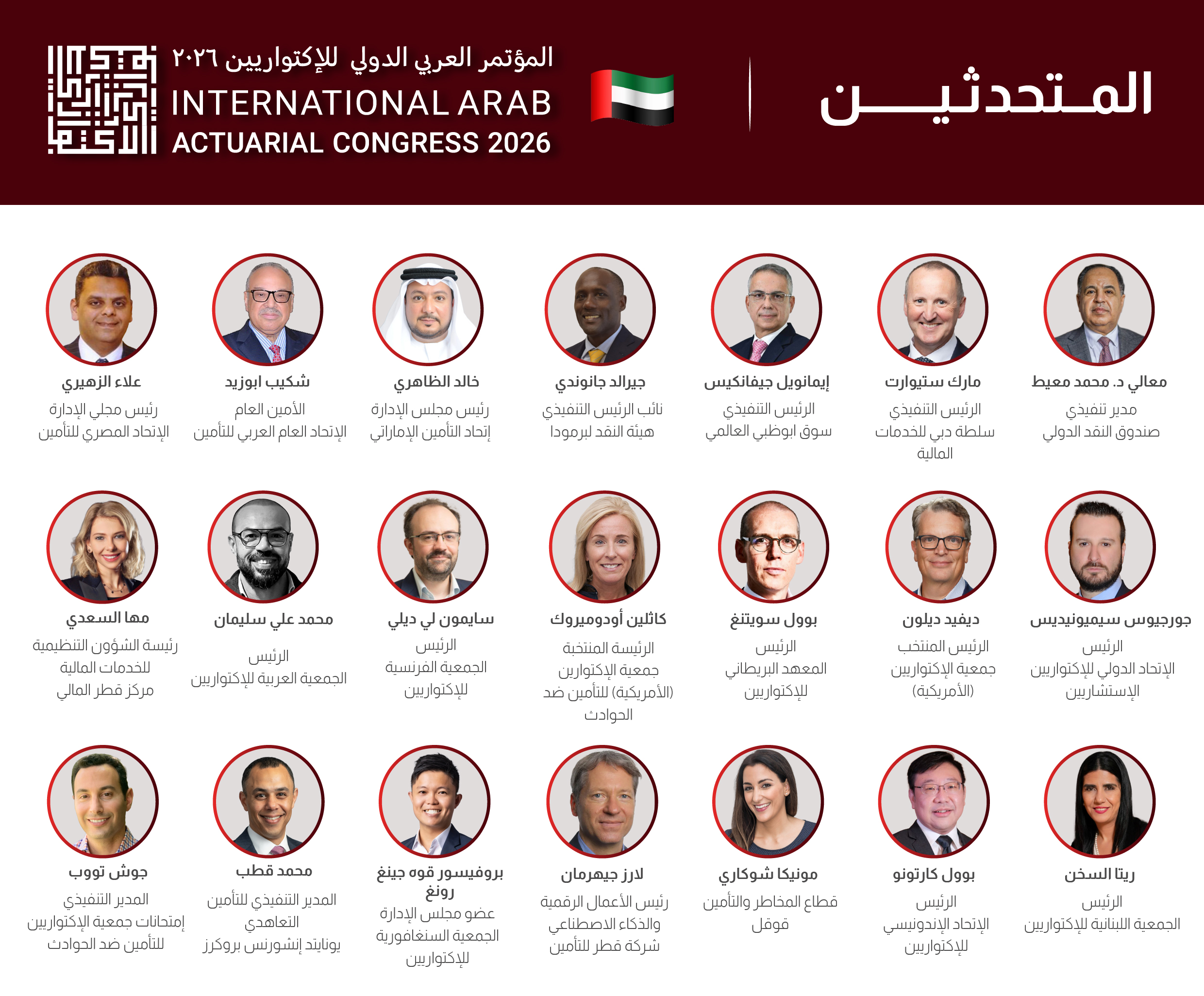 المؤتمر العربي الدولي للإكتواريين ٢٠٢٦ هو نسخة خاصة ودولية من المؤتمر العربي للإكتواريين، والذي يعد منصة مهنية إقليمية للخبراء الاكتواريين والشركات الاكتوارية والشركات والصناعات التي تعتمد على الأعمال الاكتوارية مثل التأمين بكل أنواعه والخدمات المصرفية والرعاية الصحية والتأمين الصحي وهيئات التأمين الإجتماعي وصناديق التقاعد وأقسام إدارة المخاطر يشكل عام في أسواق الشرق الأوسط وأفريقيا.
